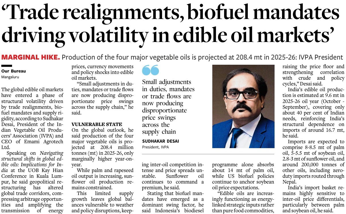 Vegoil sector witnessed a consumer-centric trend: IVPA chief Sudhakar Desai (27.12.2023)
